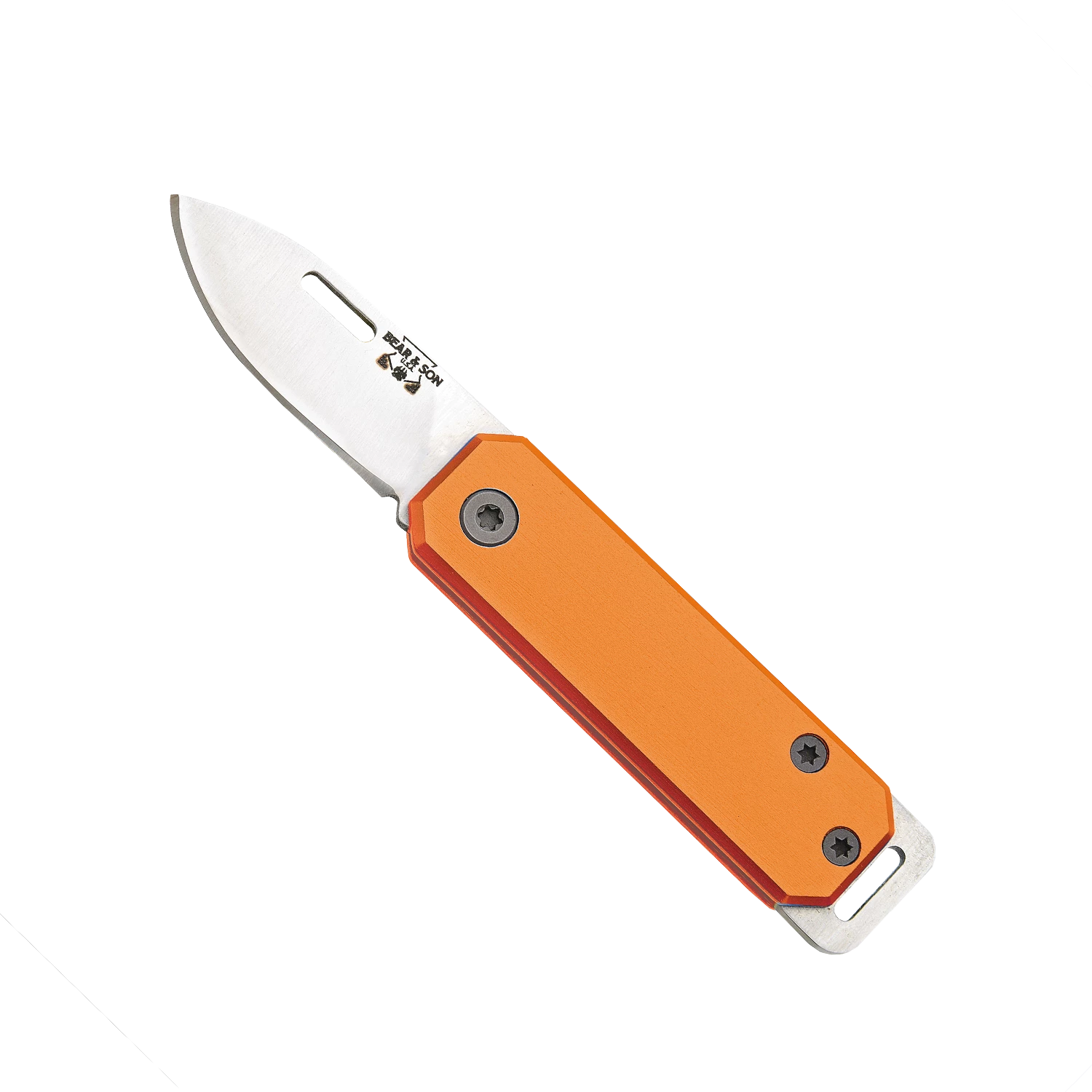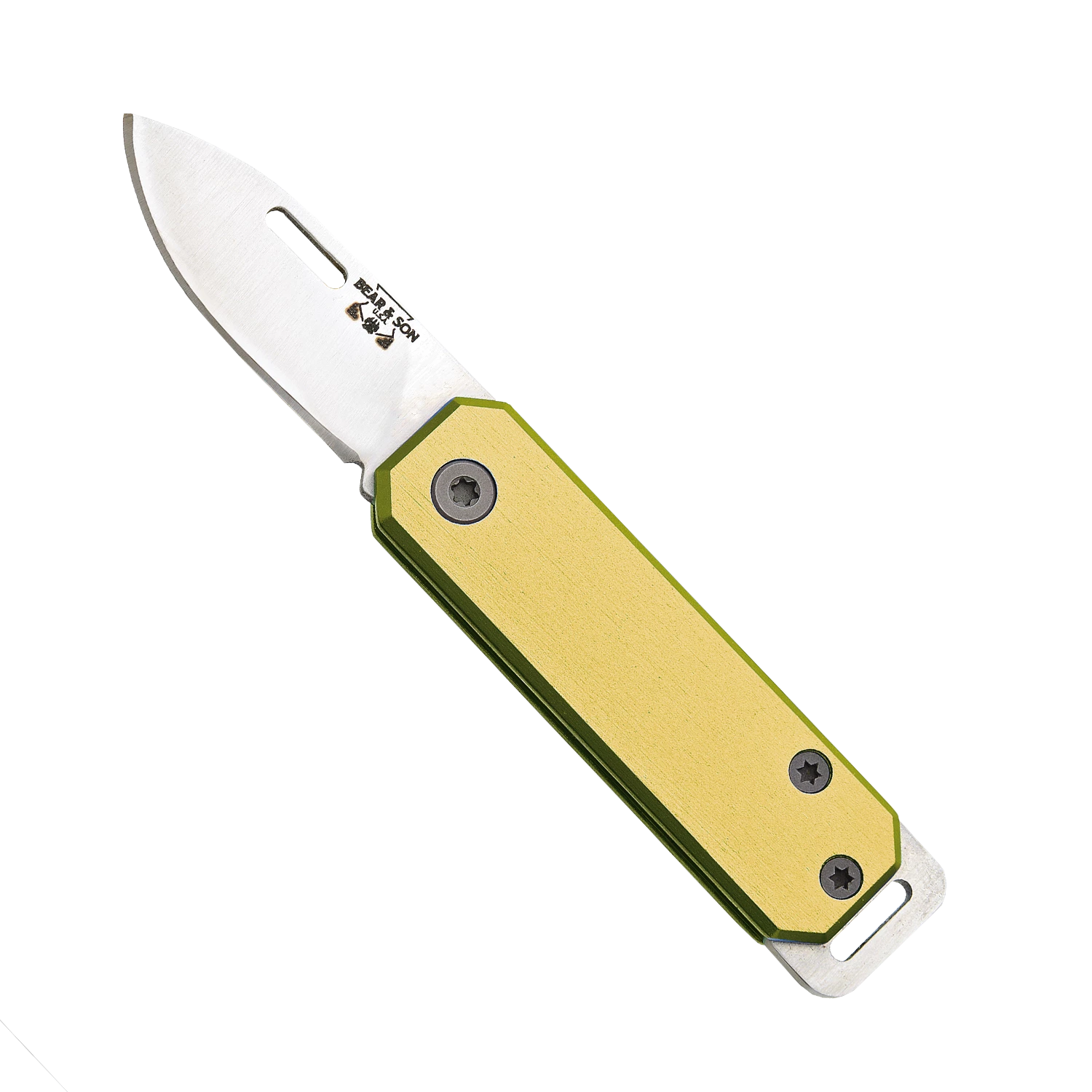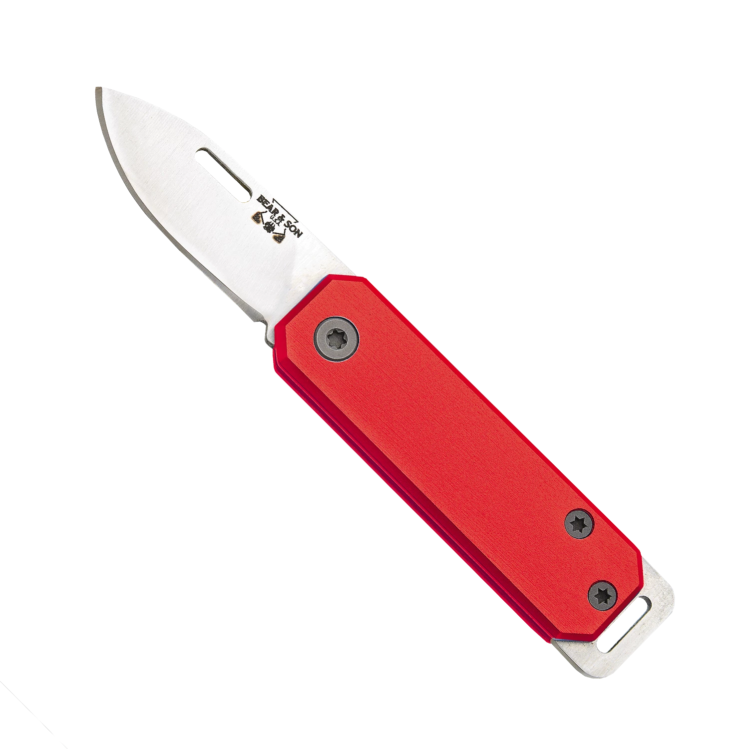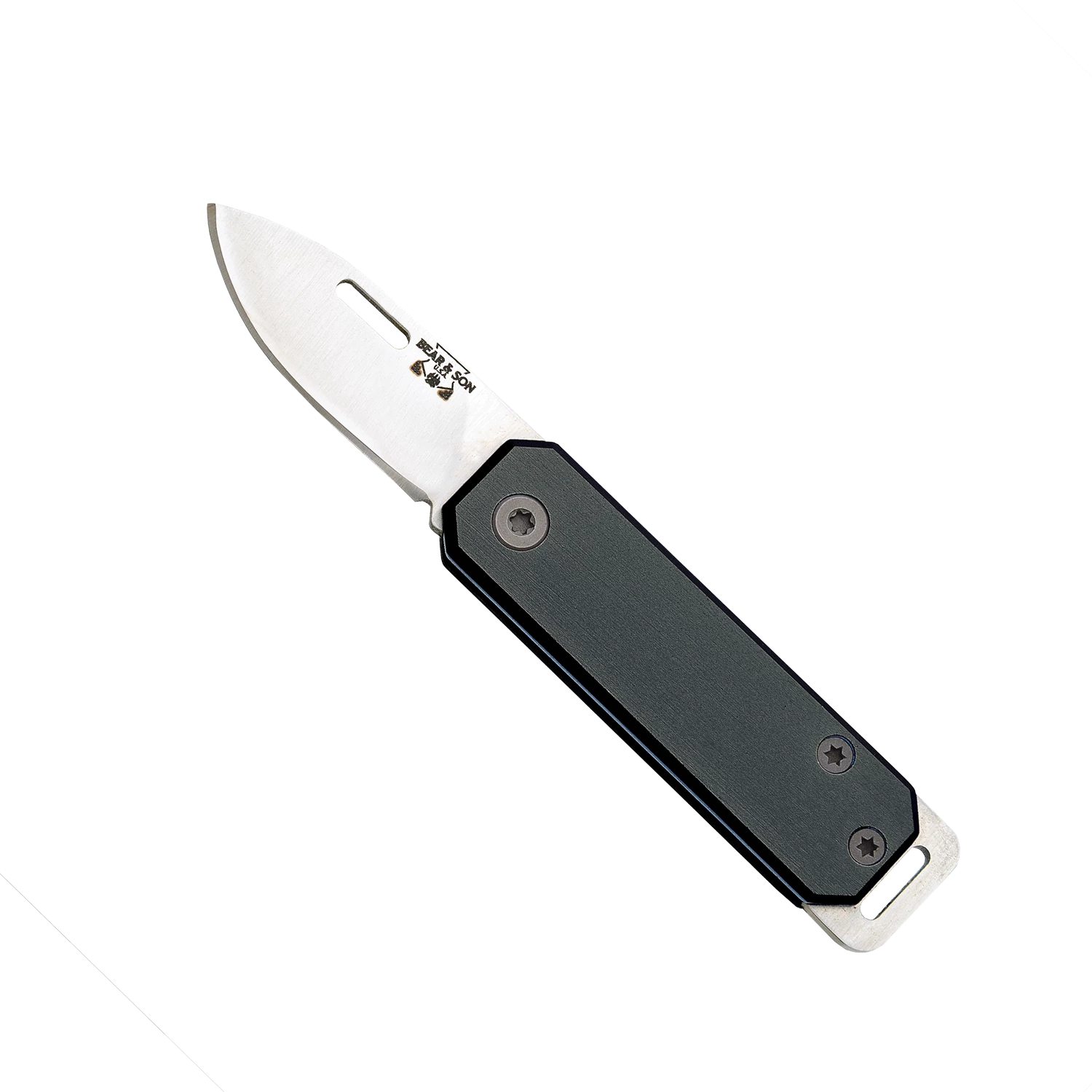 The Bear & Son 109 is a Lightweight Slip Joint Drop Point with an Aluminum Handle. The Taper Ground 1-1/2″ Drop Point Blade is made from High Carbon Stainless Steel, making it rust resistant, easy to sharpen, and will hold an edge exceptionally well. The Bear & Son 109 has a hollow nail nick present to open the blade. The Bear & Son 109 has an overall length of 4-1/8″ and is a good size to fit in the pocket, purse or on a key chain. The 109 weighs 1.0 ounces.