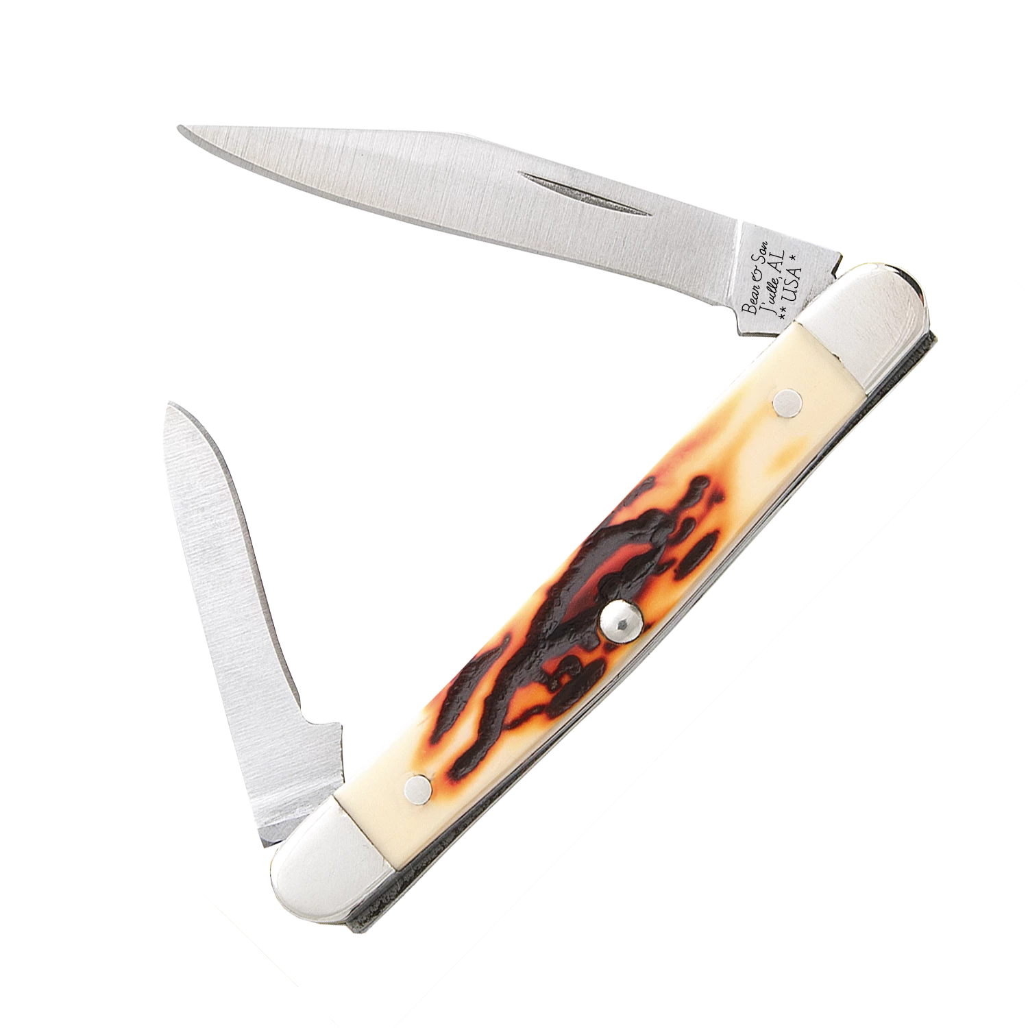 The Bear & Son 32 is a Pen Knife. The Taper Ground 2-1/8″ Master blade and 1-3/8″ Pen Blade are made from High Carbon Stainless Steel, making them rust resistant, easy to sharpen, and will hold an edge exceptionally well. The 3″ Handle is designed with Stainless Steel Liners and Nickel Silver Bolsters. The Bear & Son 32 has the traditional slip-joint lock that is easy to open and close and nail nicks are present to open the blades. The Bear & Son 32 has an overall length of 4-7/8″ and is a great lightweight pocket knife. 32 weighs 1.0 ounce.