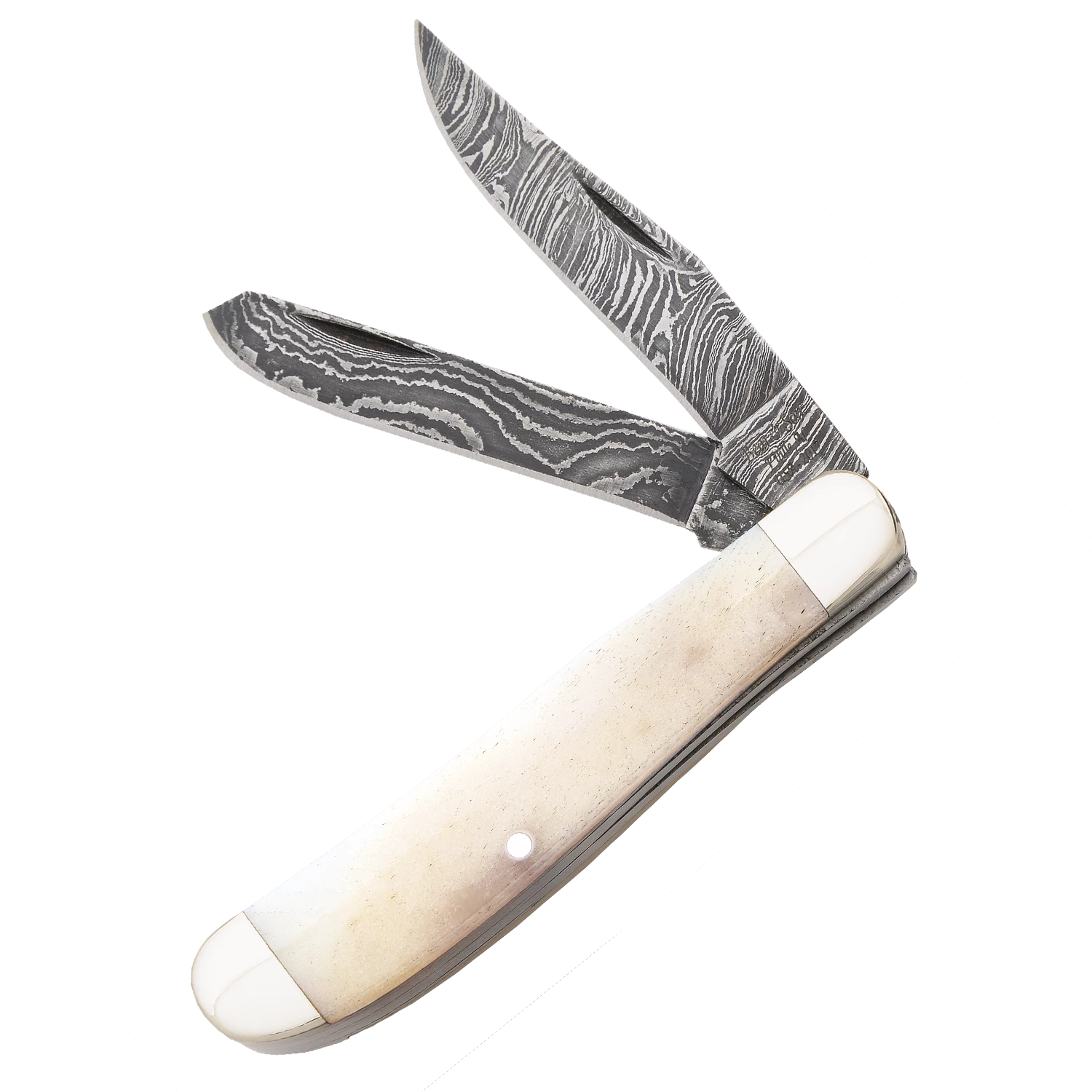 3-1/2 in. White Smooth Bone Damascus Mini Trapper