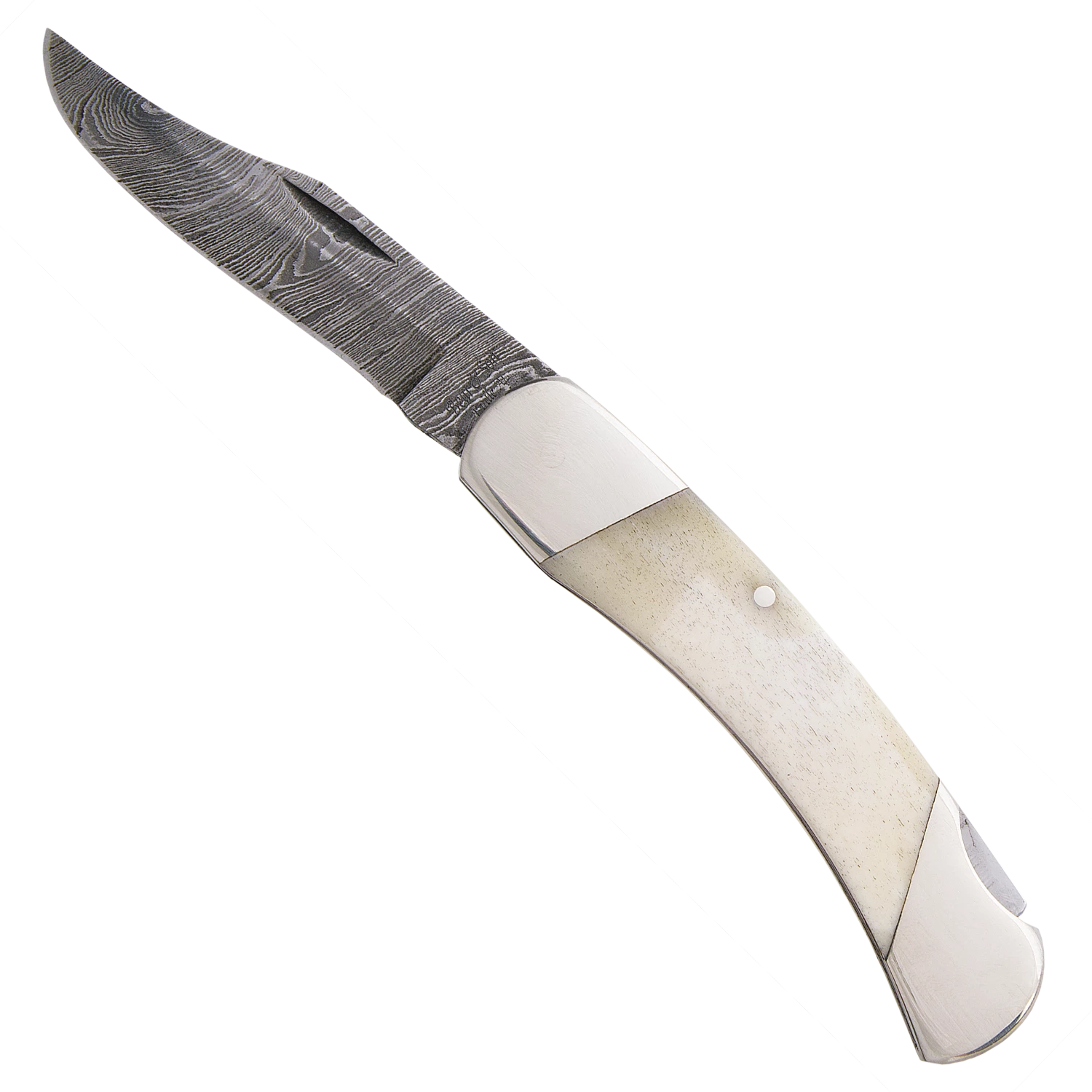 3-3/4 in. White Smooth Bone Damascus Midsize Lockback