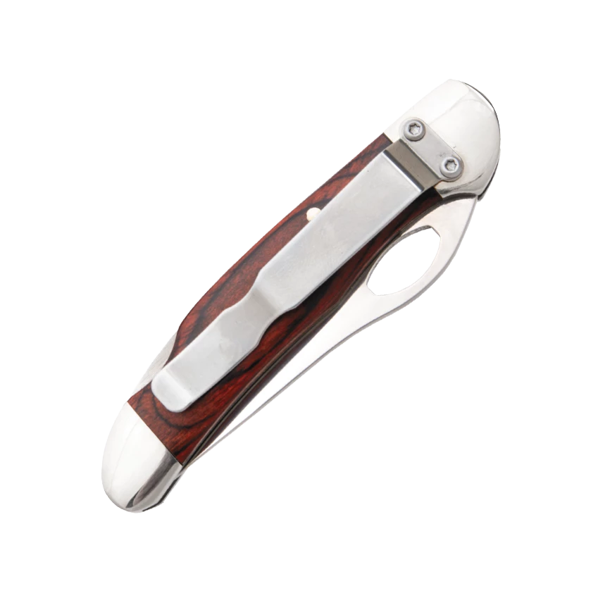 The Bear & Son 2149LR is a Locking Cowhand™ with a Rosewood Handle. The Hollow Ground 2-7/8″ Blade is made from a High Carbon Stainless Steel, making it rust resistant, easy to sharpen, and will hold an edge exceptionally well. The 3-3/4″ Rosewood Handle is designed with a Stainless Steel Liner and Nickel Silver Bolsters. The Bear & Son 2149LR has a positive lock to ensure that the blade remains firmly in place and is easy to open and close one-handed with the thumb hole. The Bear & Son 2149LR has an overall length of 6-5/8″ and features a pocket clip for tip down carry. 2149LR weighs 2.4 ounces.