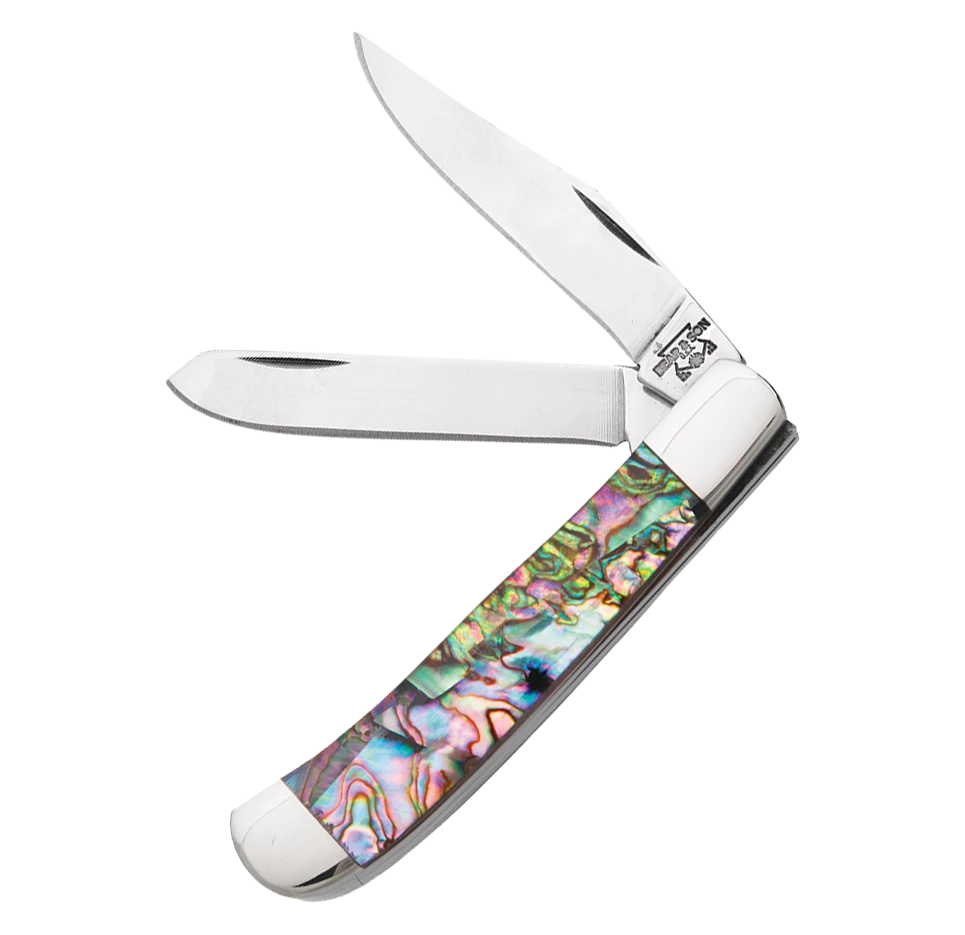 The Bear & Son 54 1/2 is a 3″ Little Trapper. The Hollow Ground 2-3/4″ Master Blade and 2-3/4″ Spey Blade are made from High Carbon Stainless Steel, making them rust resistant, easy to sharpen, and will hold an edge exceptionally well. The 54 1/2 is designed with Stainless Steel Liners and Nickel Silver Bolsters. The Bear & Son 54 1/2 has the traditional slip-joint lock that is easy to open and close and nail nicks are present to open the blades. The Bear & Son 54 1/2 has an overall length of 5-1/4″ and is perfect for those who like to trap small game. 54 1/2 weighs 1.7 ounces.