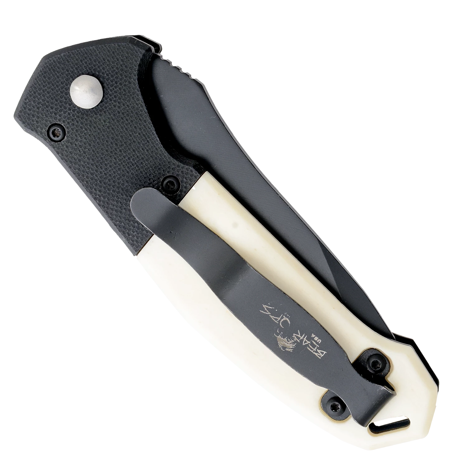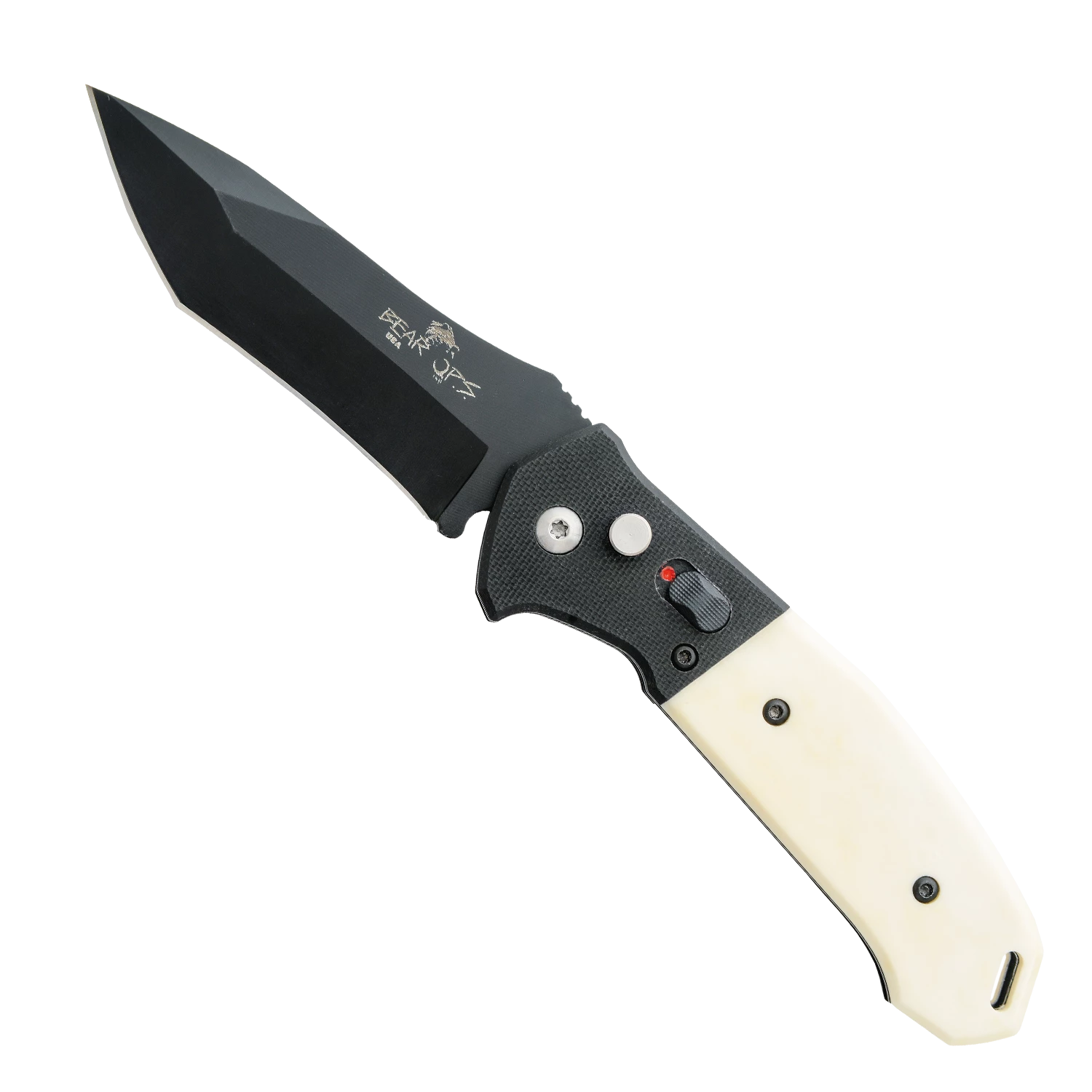 4-1/2 in. Black G10 and White Smooth Bone Auto w/Black Finish Blade