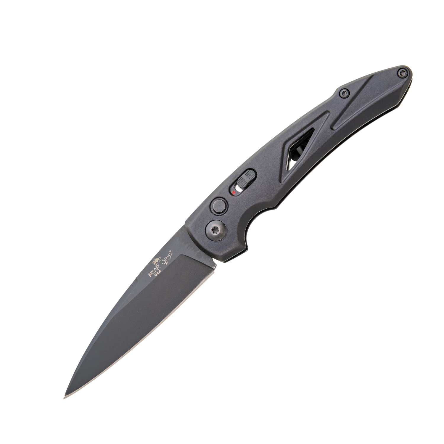 The Bear Ops AC-1600 is part of the Auto Bold Action® XVI series. The Hollow Ground 3″ blade edge is made with Sandvik 14C28N Premium Steel with a Black Finish allowing for a tough blade with great edge retention. The blade quickly opens with a press of the raised button with a safety lock switch just below. Although it is an automatic, the small blade size makes it legal to carry in the State of California. The Stainless Steel 4″ handle features a pocket clip for tip up carry. The Bear Ops AC-1600 has an overall length of 7″ and weighs 2.6 ounces. Bold Action® XVI is proudly made in the USA.