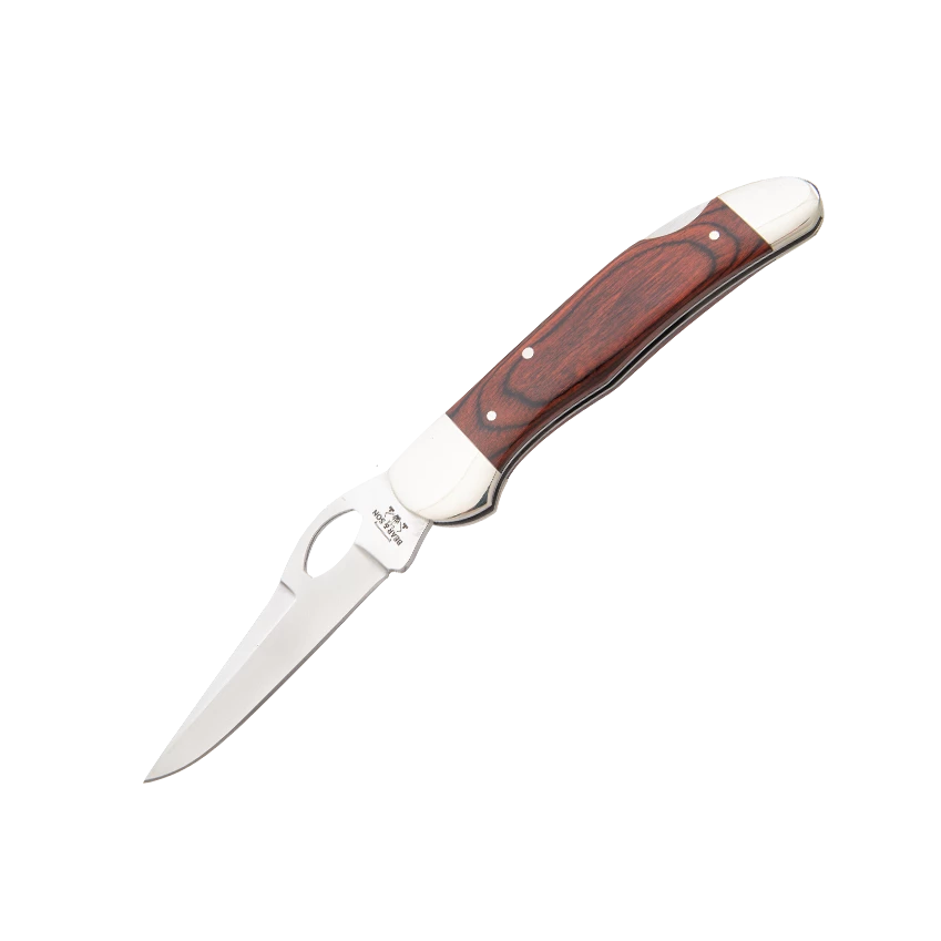 The Bear & Son 2150LR is a Locking Cowhand™ with a Rosewood Handle. The Hollow Ground 3-1/4″ Blade is made from a High Carbon Stainless Steel, making it rust resistant, easy to sharpen, and will hold an edge exceptionally well. The 4-3/8″ Rosewood Handle is designed with a Stainless Steel Liner and Nickel Silver Bolsters. The Bear & Son 2150LR has a positive lock to ensure that the blade remains firmly in place and is easy to open and close one-handed with the thumb hole. The Bear & Son 2150LR has an overall length of 7-3/4″ and features a pocket clip for tip down carry. 2150LR weighs 3.2 ounces.