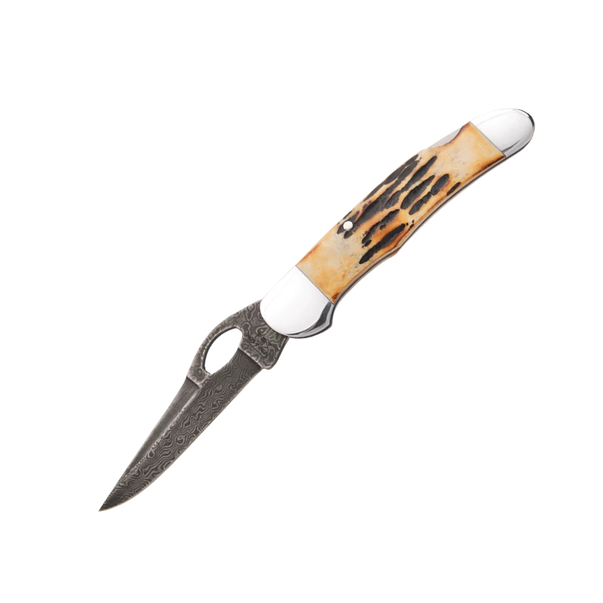 4-3/8 in. Genuine India Stag Bone™ Damascus Locking Cowhand™ w/ Pocket Clip – 5150LD