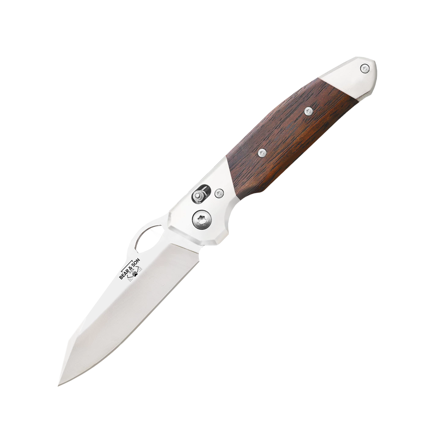 Bear and Son Cutlery expands its slide-locking pocketknife line with the new model CB10N. This knife features a super smooth action, premium D2 steel, quality Cocobola wood handles, polished finish, robust pocket clip, and is backed by a lifetime warranty.