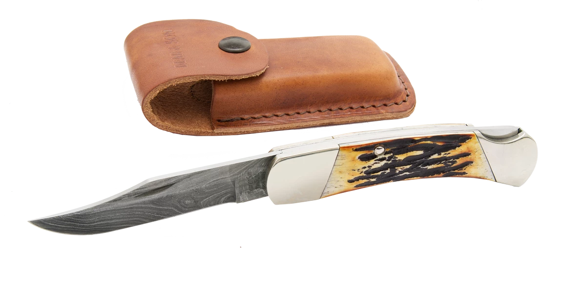 5 in. Genuine India Stag Bone™ Pro Lockback w/Leather Sheath