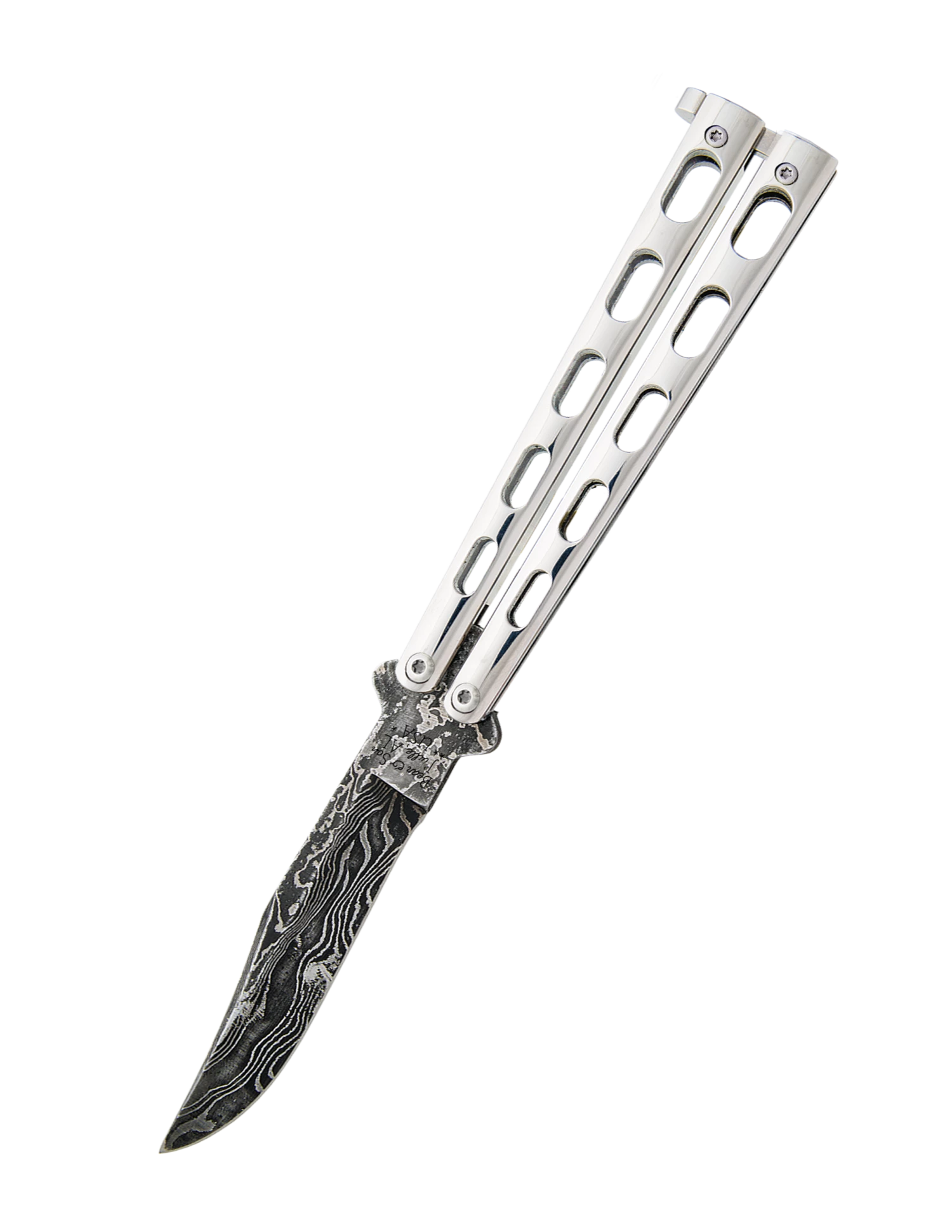 5 in. Stainless Steel Handle Butterfly w/ Damascus Blade