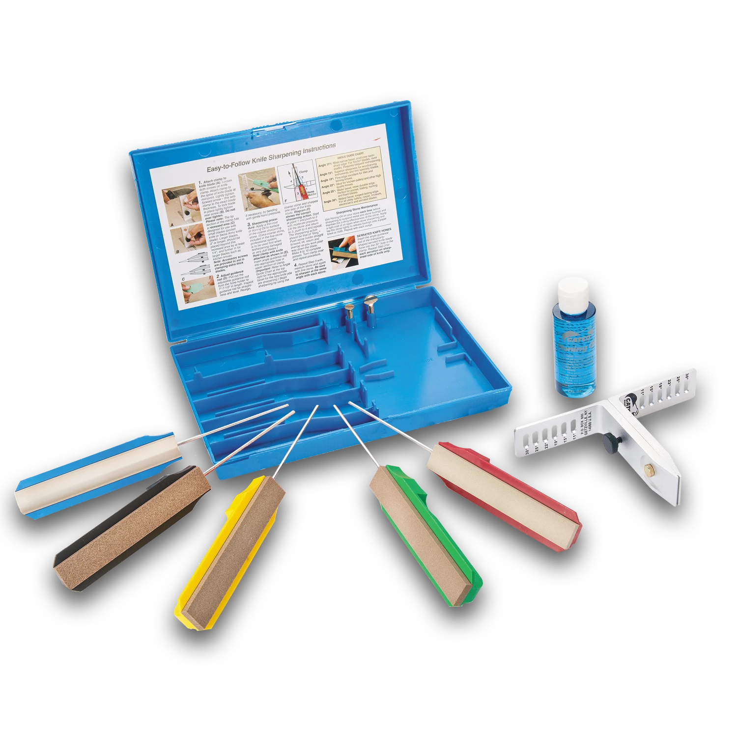 This is the ultimate knife sharpening system that will sharpen all kitchen, sport, and utility cutlery including knives and cutting tools with serrated blades. Never before has a sharpening system done so much! This specialty product utilizes the GATCO® exclusive knife clamp/angle guide to ensure that all cutting tools can be easily sharpened to a precise razor-like edge.