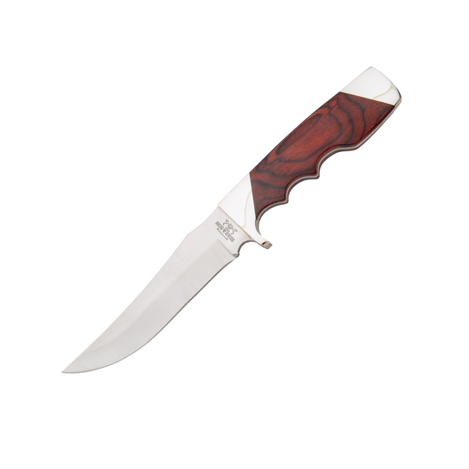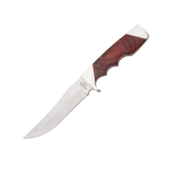 Model 77 is a 6.0 ounce Finger Groove Skinner that is designed with a Fixed 4-3/8” Hollow Ground 440 High Carbon Stainless Steel blade that is rust resistant, easy to sharpen, and holds an edge very well. The stainless-steel full tang handle making this knife very durable for hunting. Model 77 features finger grooves for secure handling and comes with a brown leather sheath for belt carry. A diamond or ceramic sharpener is recommended due to the metal hardness.