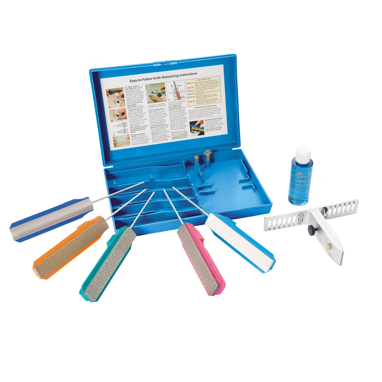 The person who demands the highest performance in a sharpening instrument demands diamonds. Diamonds, among the hardest cutting media known, can cut quickly and easily through the hardest steel. These properties provide the discerning customer with a sharpening instrument that will outperform any other type of abrasive media. This system offers the addition of a 96% alumina ceramic hone that provides a surgical finish to blade edges.