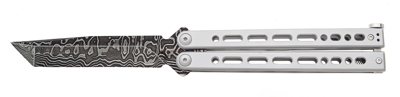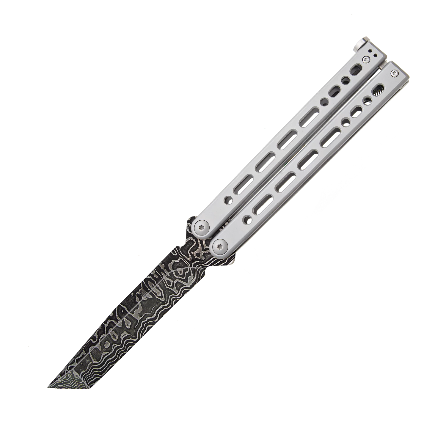 SMALL BEAR SONG® VIII GREY STAINLESS HANDLE W/ TANTO DAMASCUS BLADE
